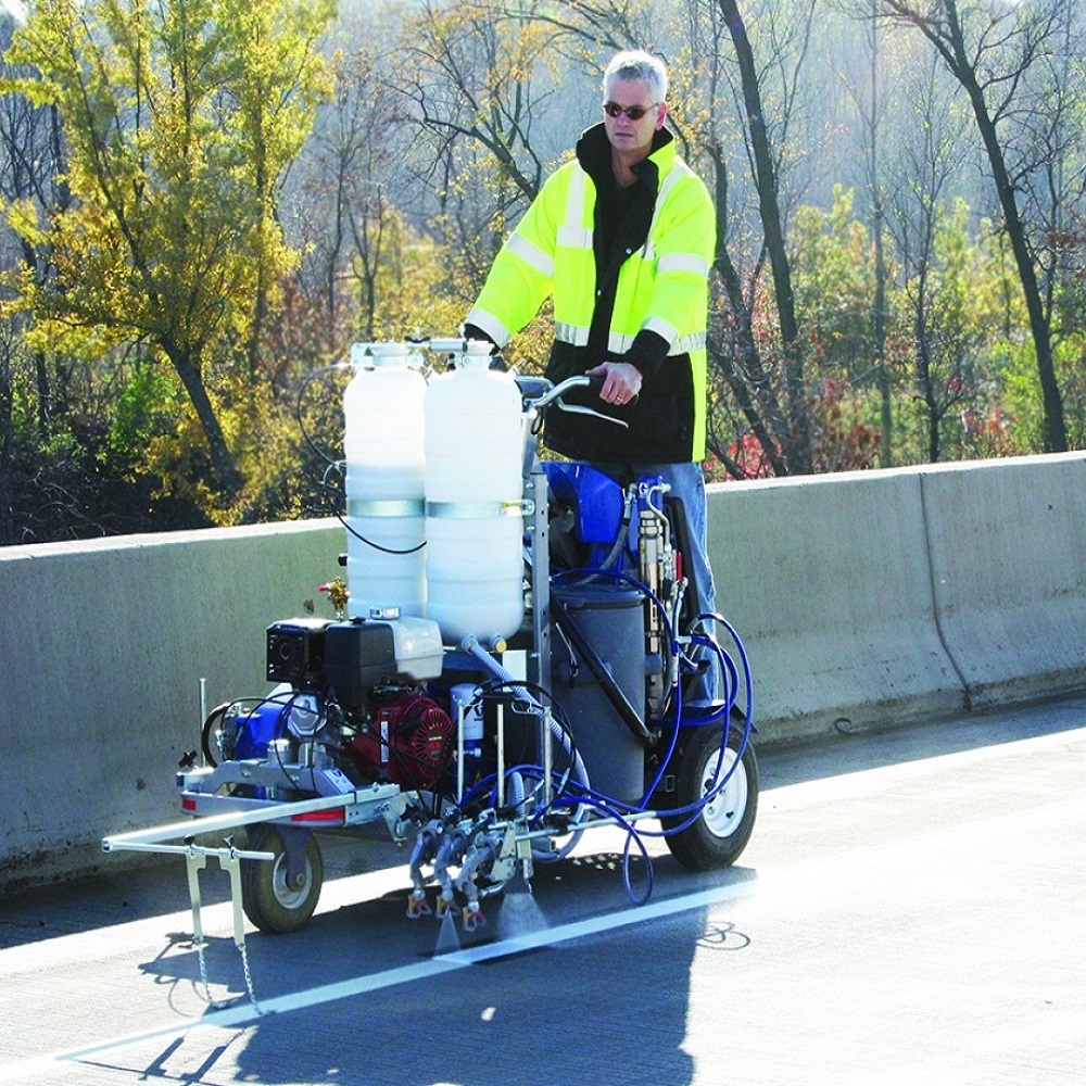 С този клас машини за полагане на бои за хоризонтална пътна маркировка могат да се нанасят машинно безвъздушно еднокомпоненти бои -акрилатни, студени пластици така и двукомпоненти бои в съотношение 1:1.