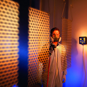 Вътрешните повърхности на камерата в достъпа на активната абразивна струя са покрити с устойчиви на абразия мангано- носеща стоманена плоча, докато други повърхности са защитени с гъвкав гумен капак, устойчив на износване.