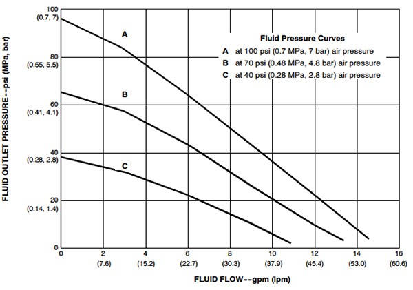 При 70 psi (4,8 бара, 0,48 МРа) при 50 цикъла в минута