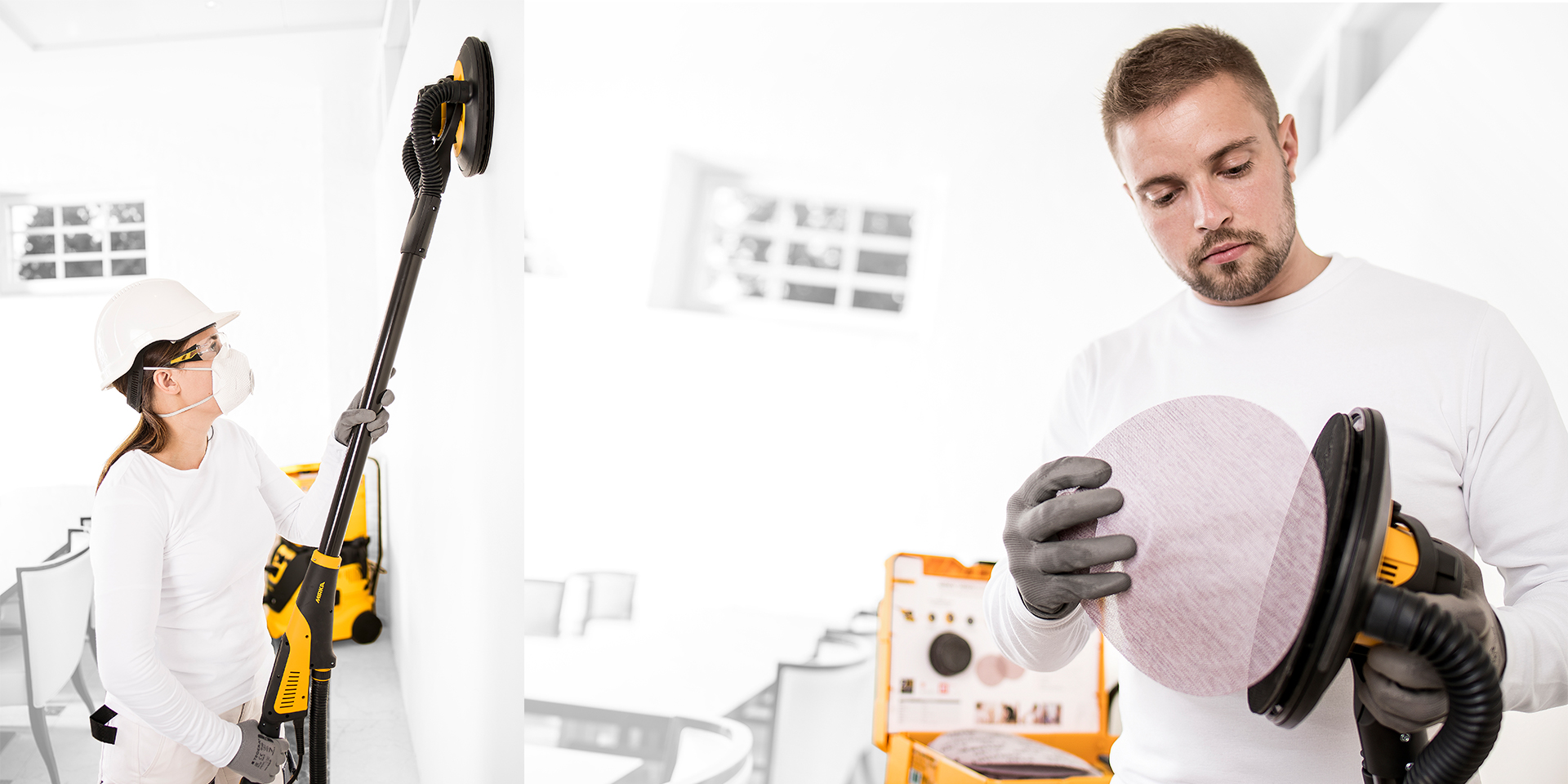 Mirka LEROS е най-леката шлайфмашина в своя клас. Първата шлайфмашина за стена с 180° гъвкава шлифовъчна глава, орбитално движение и двойни смукателни точки.